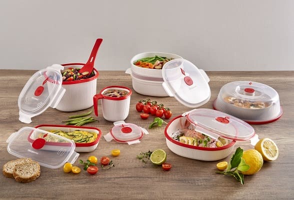 I prodotti e i materiali usati sono conformi al regolamento (EC) No. 10/2011 e alla Bedarfsgegenständeverordnung (ordinanza tedesca sulle materie prime).