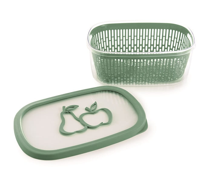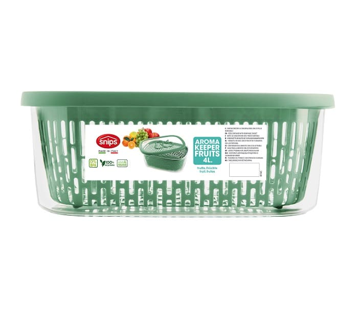 - Der interne herausnehmbare Korb sorgt für Belüftung und Abfluss von Lebensmitteln.