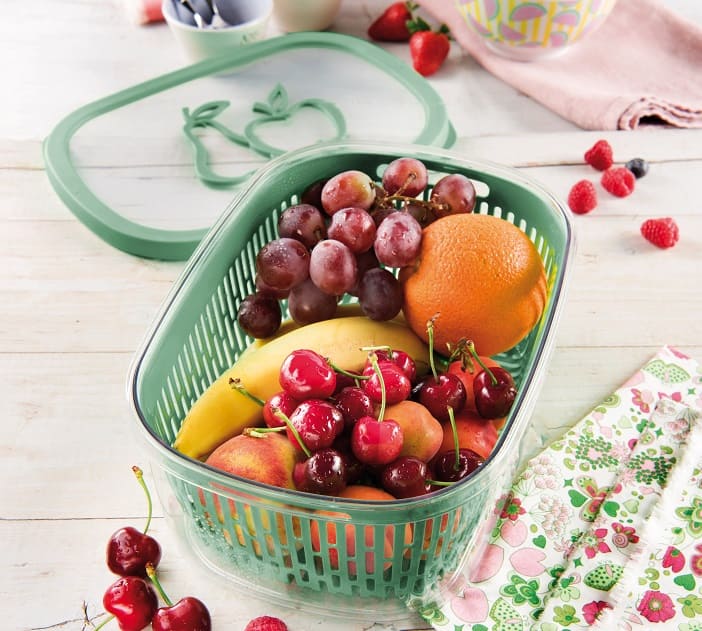 - Der Korb kann separat zum Waschen der Früchte verwendet werden.