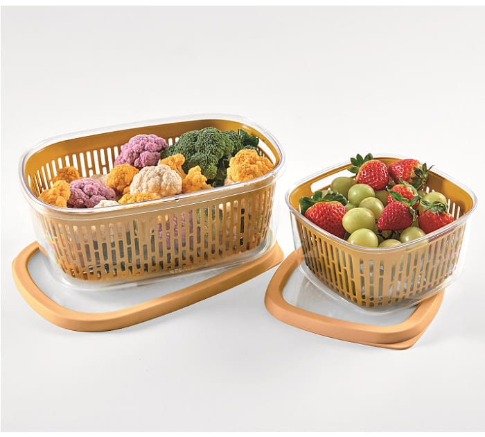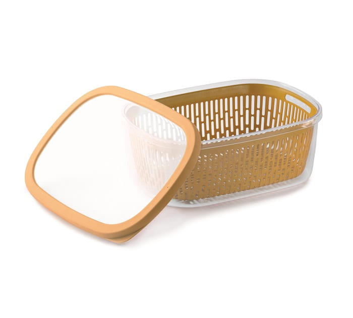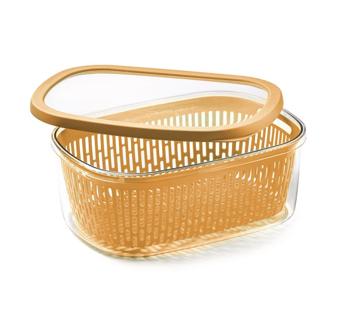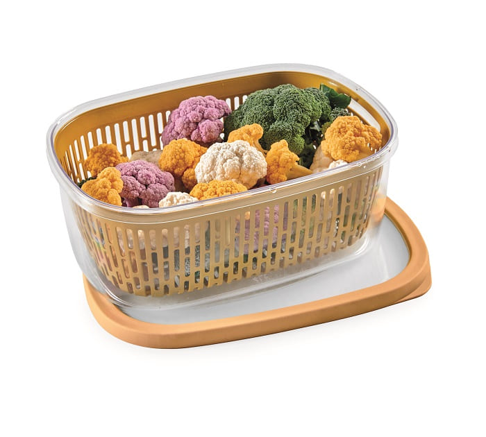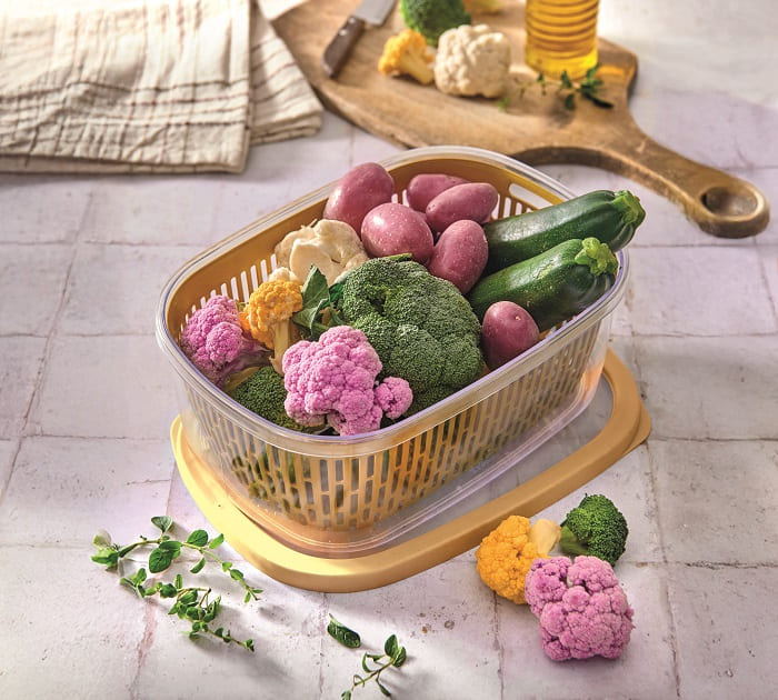 - Der interne herausnehmbare Korb sorgt für Belüftung und Abfluss von Lebensmitteln.