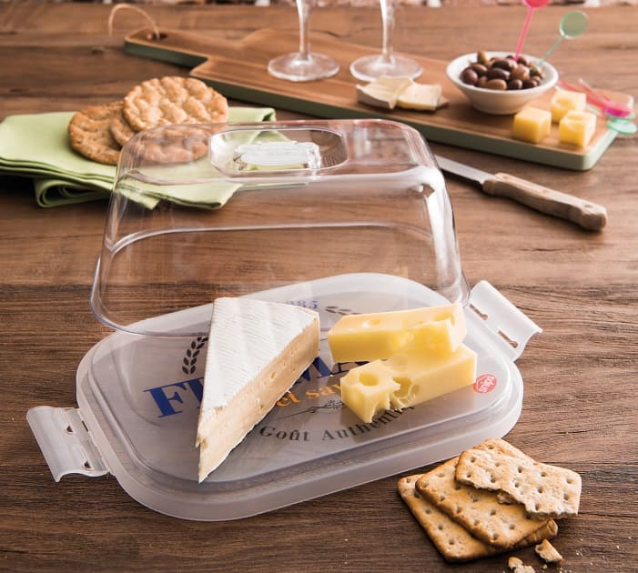 - Der transparente Deckel und das Tablett machen es ideal, um Käse direkt auf dem Tisch zu servieren.