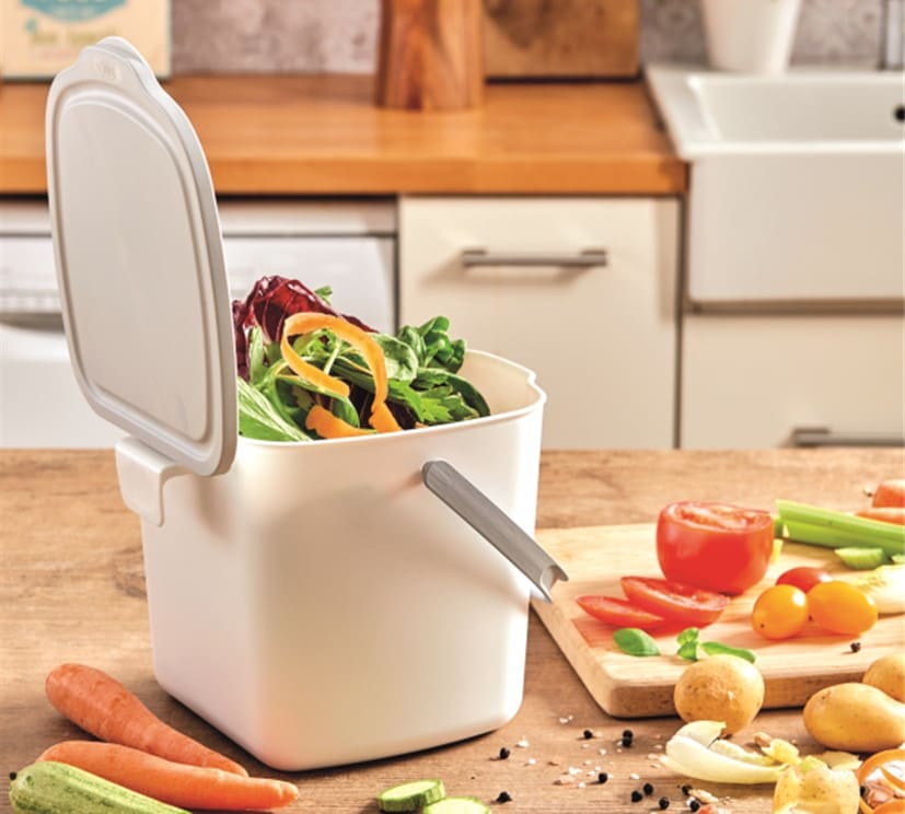 - Kleiner Abfallbehälter mit Deckel zur Zubereitung während der Zubereitung.
