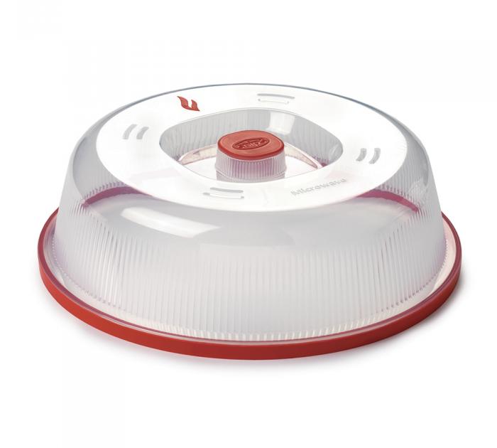 - Eine Abdeckung für Ihr Geschirr während der Mikrowellenerwärmung. Die Abdeckung verhindert, dass Wasser und Fett die Mikrowelle verschmutzen.