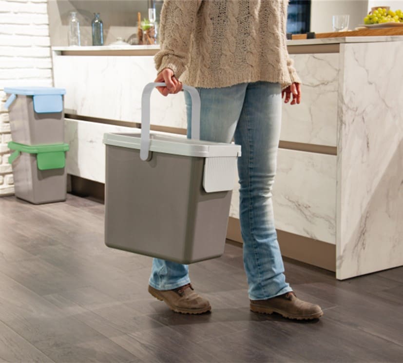 - Der Griff ermöglicht einen einfachen Transport des Behälters für die separate Sammlung, der Deckel vollständig abnehmbar ermöglicht eine schnelle Entleerung des Behälters.