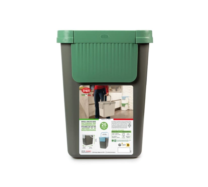 - Behälter von 25 LT, abnehmbarer Deckel, Fronttür und ein praktischer Griff. Dieser Abfallbehälter für die getrennte Sammlung ist ideal für die Trennung von Abfällen: Glas, Papier und Pappe, Dosen, Kunststoff usw. Perfekt für die Organisation der getrennten Sammlung von Haus oder Büro, Innen und Außen.