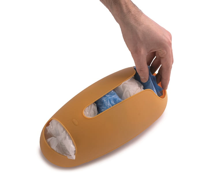 - Er kann bis zu 30 Beutel aufnehmen. Die Beutel werden durch das obere Loch eingelegt und durch das untere Loch herausgezogen. Er ist sehr praktisch dank der großen Öffnungen.