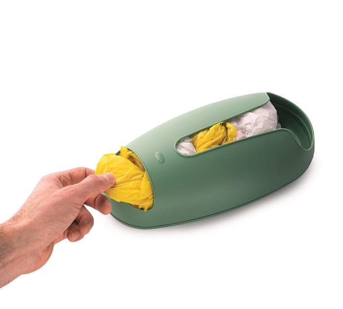 - Er kann bis zu 30 Beutel aufnehmen. Die Beutel werden durch das obere Loch eingelegt und durch das untere Loch herausgezogen. Er ist sehr praktisch dank der großen Öffnungen.