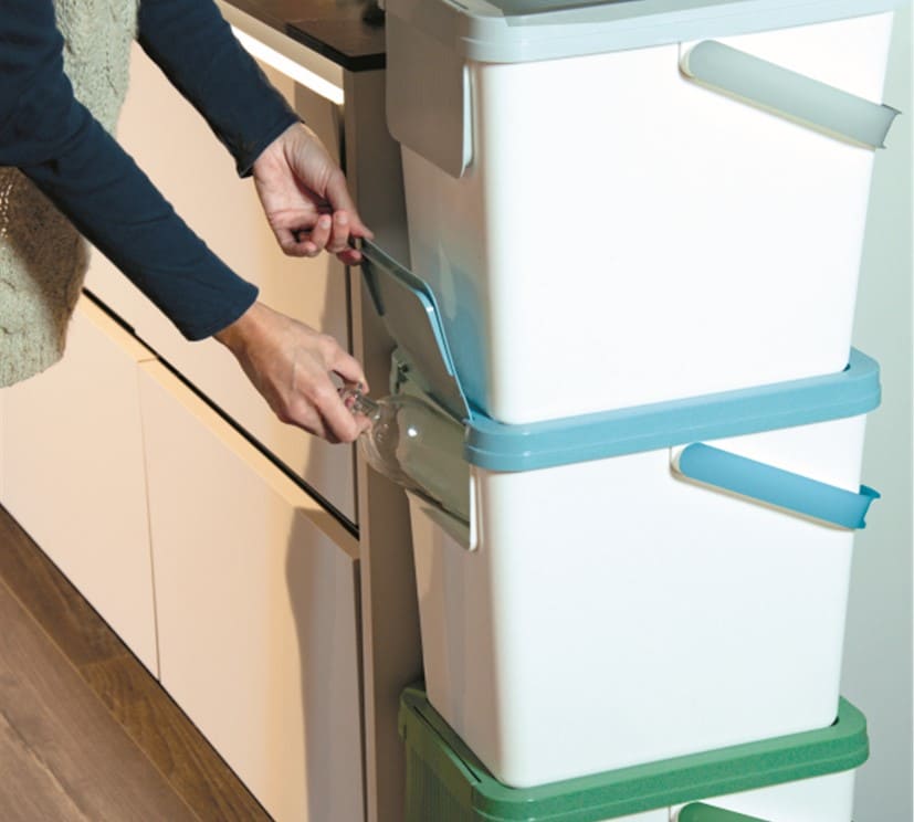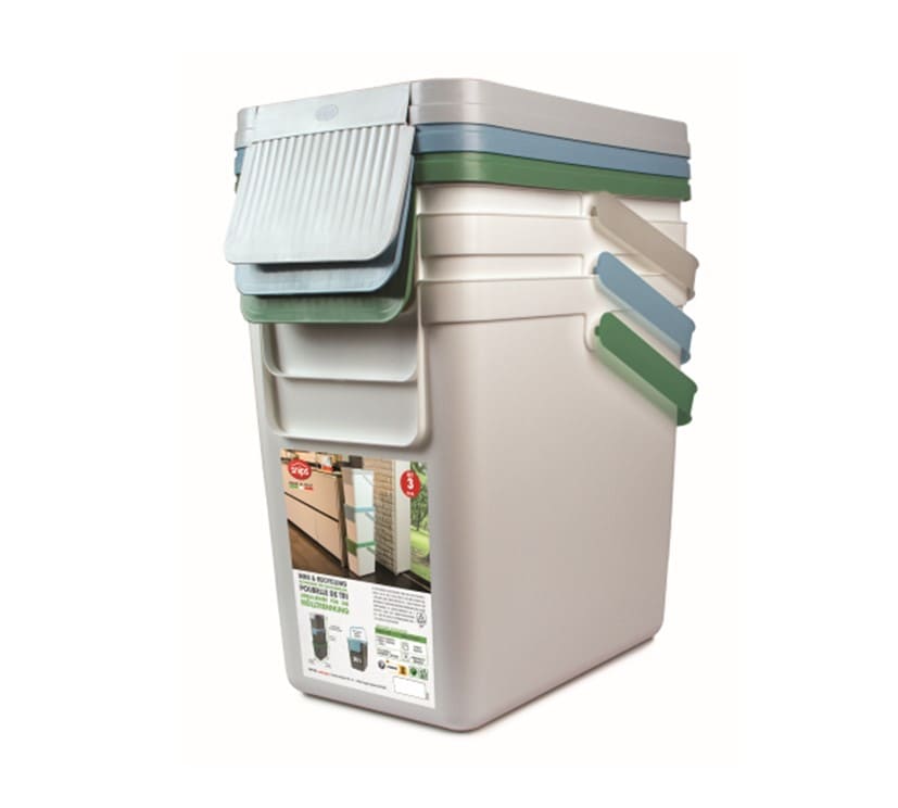 - Set von 3 Behältern (je 25 LT Fassungsvermögen), ausgestattet mit abnehmbarem Deckel, Haustür und einem praktischen Griff. Dieser Abfallbehälter für die separate Innen- und Außensammlung ist ideal für die Trennung von Abfällen: Glas, Papier und Pappe, Dosen, Kunststoff usw. Perfekt für die Organisation der separaten Sammlung von Haus oder Büro.