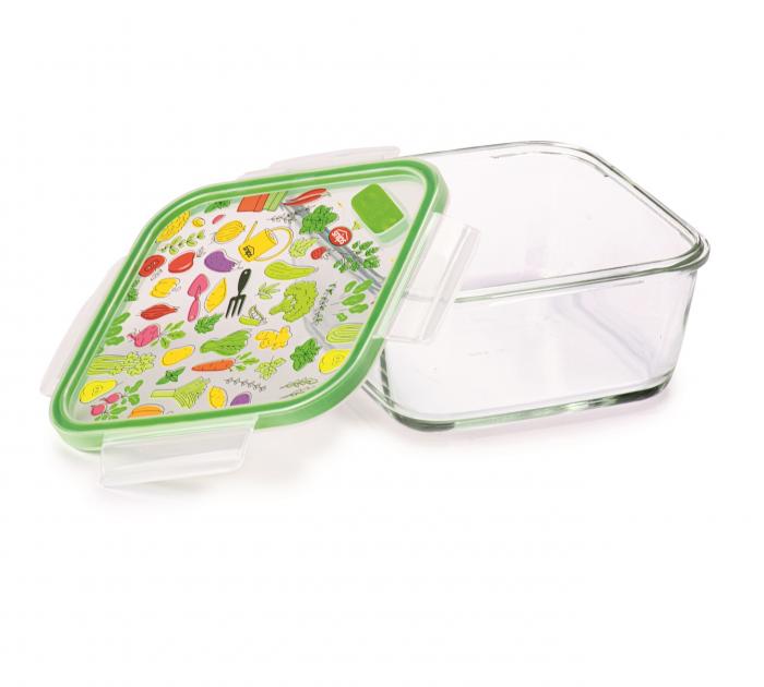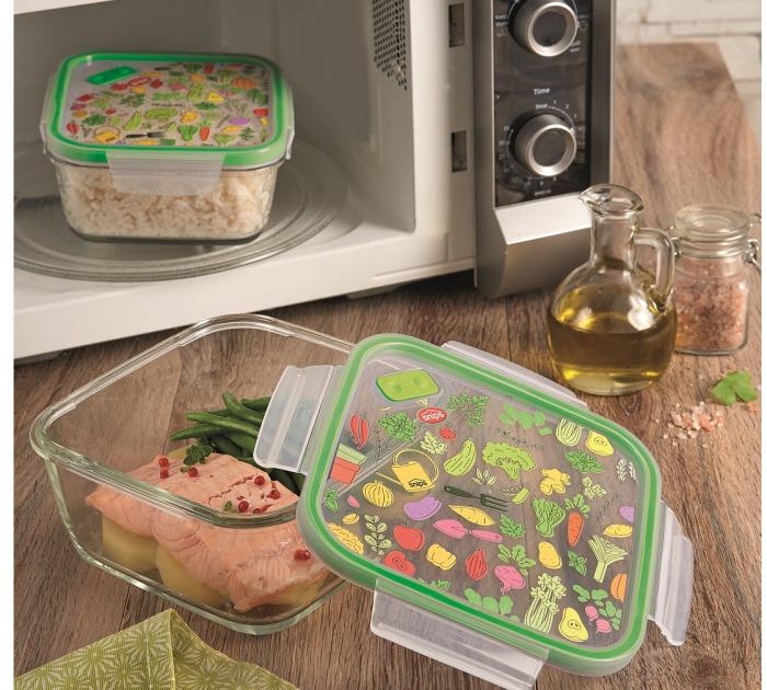 - Glass container suitable for use in the fridge and freezer; it preserves the aroma and fragrance of all types of food.