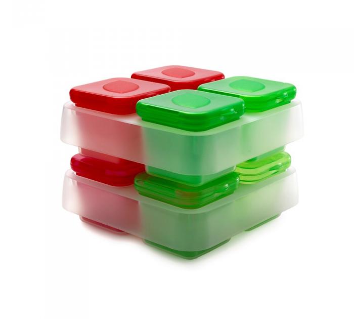 - Quatre petits récipients une portion de 100 ml qui peuvent être extraits individuellement, adaptés au stockage d’herbes, d’épices, de sauces et de petites quantités de nourriture, au réfrigérateur ou au congélateur.