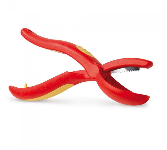 - La poignée avec ses inserts antidérapants et la lame en acier denté rendent cet accessoire ergonomique et efficace.