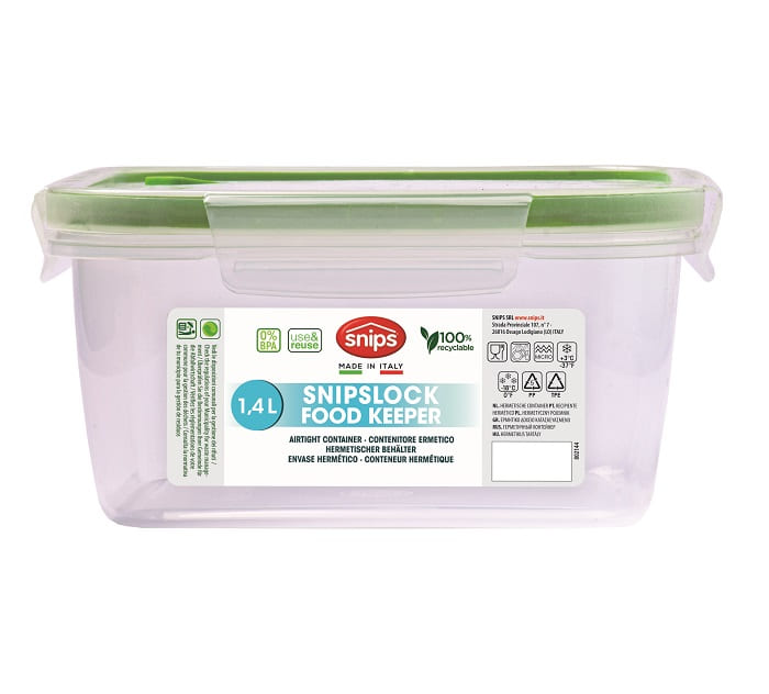 - 4 clips de fermeture et le joint garantissent une parfaite conservation du contenu et un transport sûr des aliments.