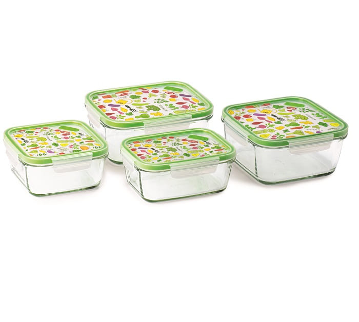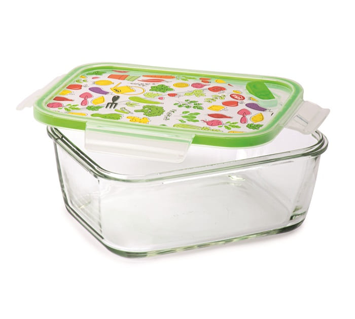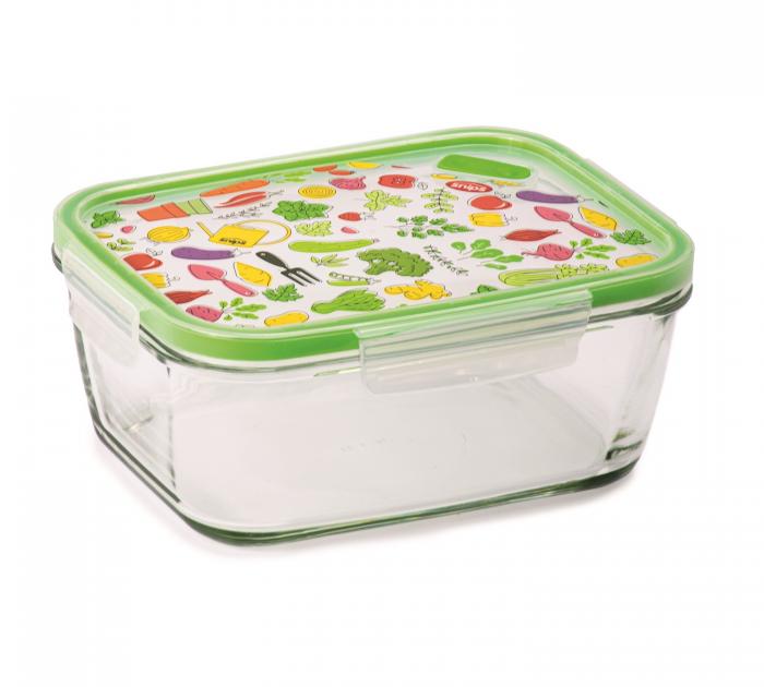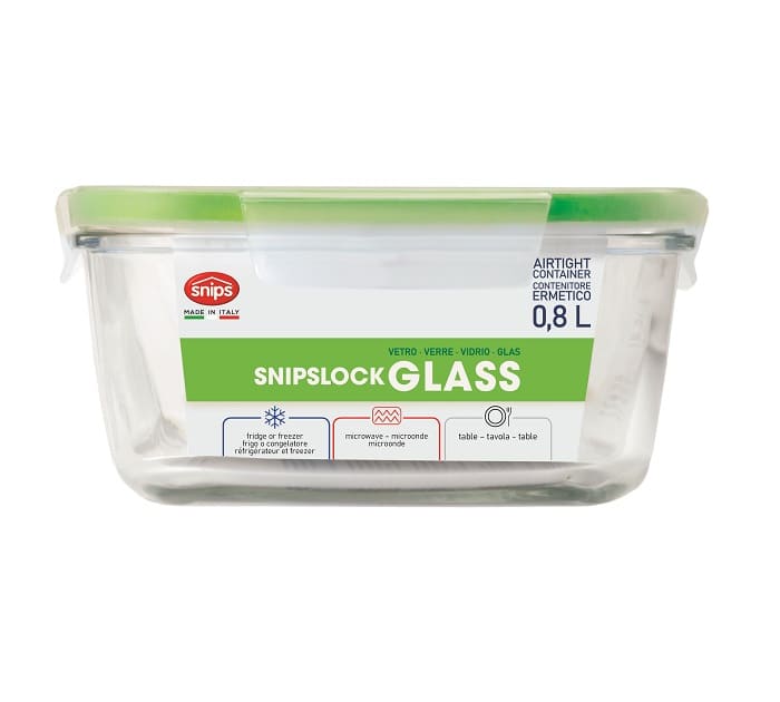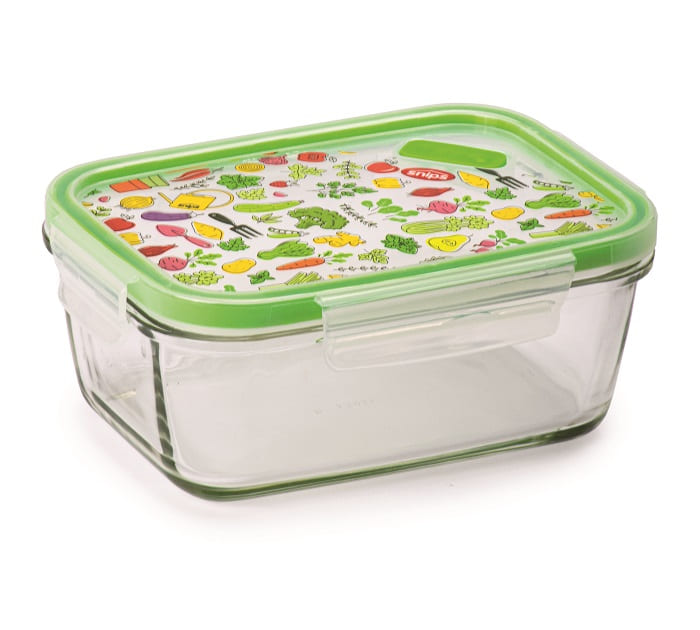 SnipsLock Glass conteneur en verre rectangulaire 0,8 L Décoré