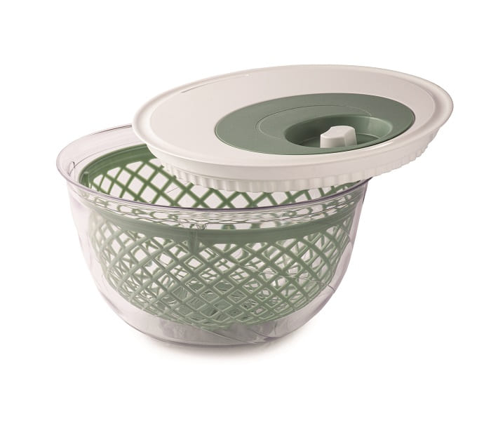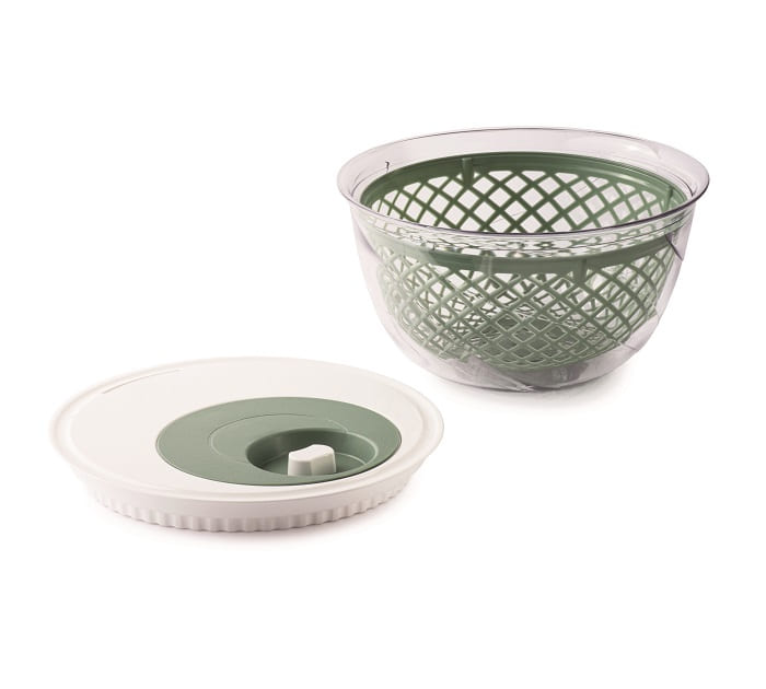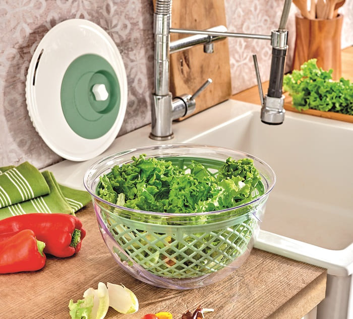 - Centrifugeuse pratique et polyvalente qui, en plus d’éliminer l’excès d’eau des légumes lavés, peut être directement utilisée pour servir de saladier.