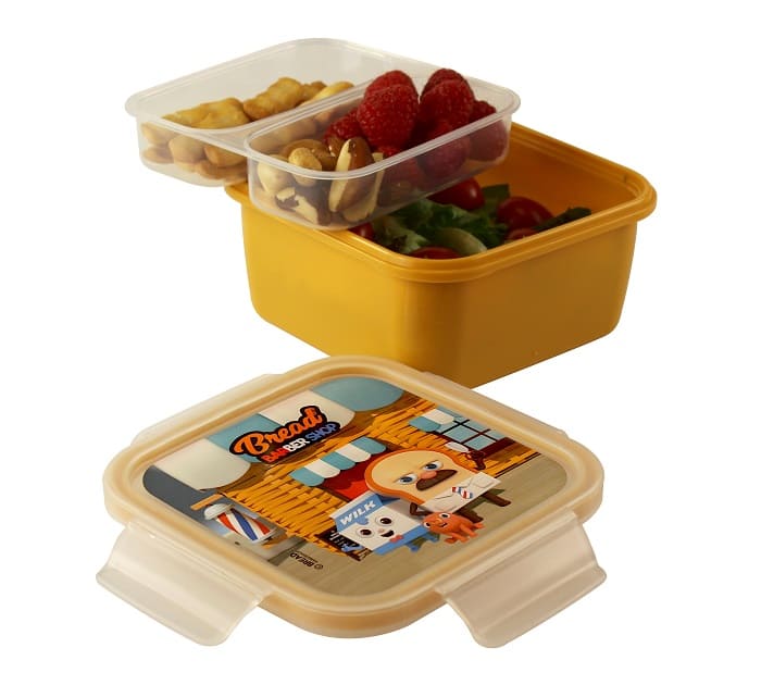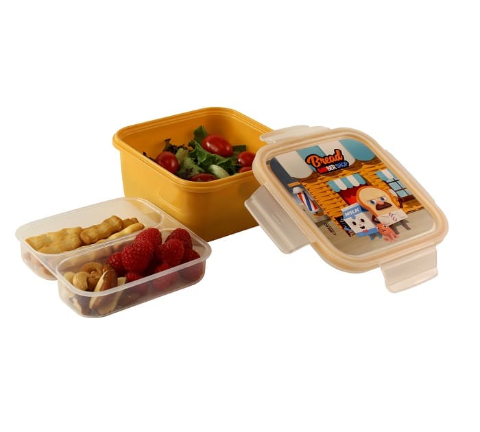 - Il set è composto da contenitore principale, vassoio estraibile con due vani, coperchio con guarnizione salva freschezza.
