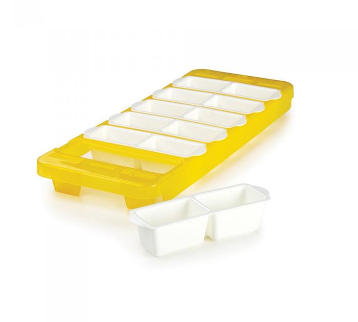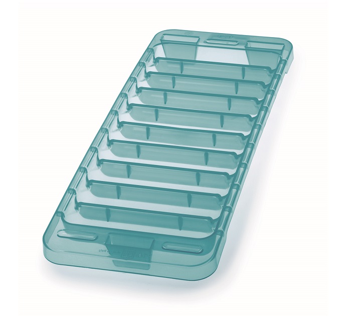 - Il vassoio centrale garantisce che le forme restino dritte negli scomparti del congelatore, evitando fuoriuscita di liquido.
