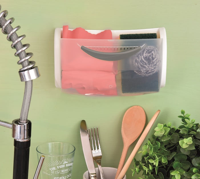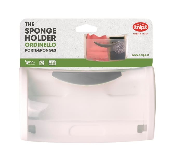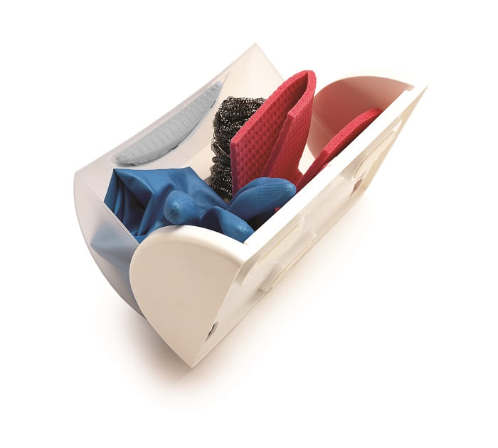 - Contenitore per spugne e guanti dotato di griglia d’areazione, per favorire l’asciugatura ed evitare la formazione di muffe.